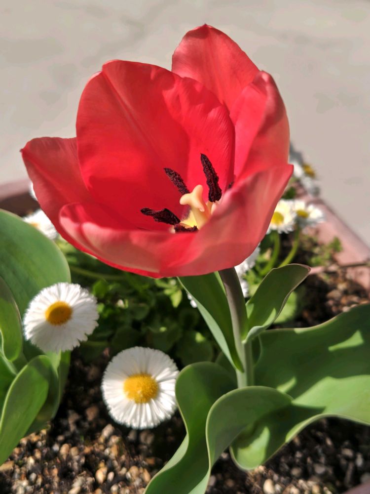 かわいい赤の♡❤️チューリップ🌷さんが咲きましたね💕︎