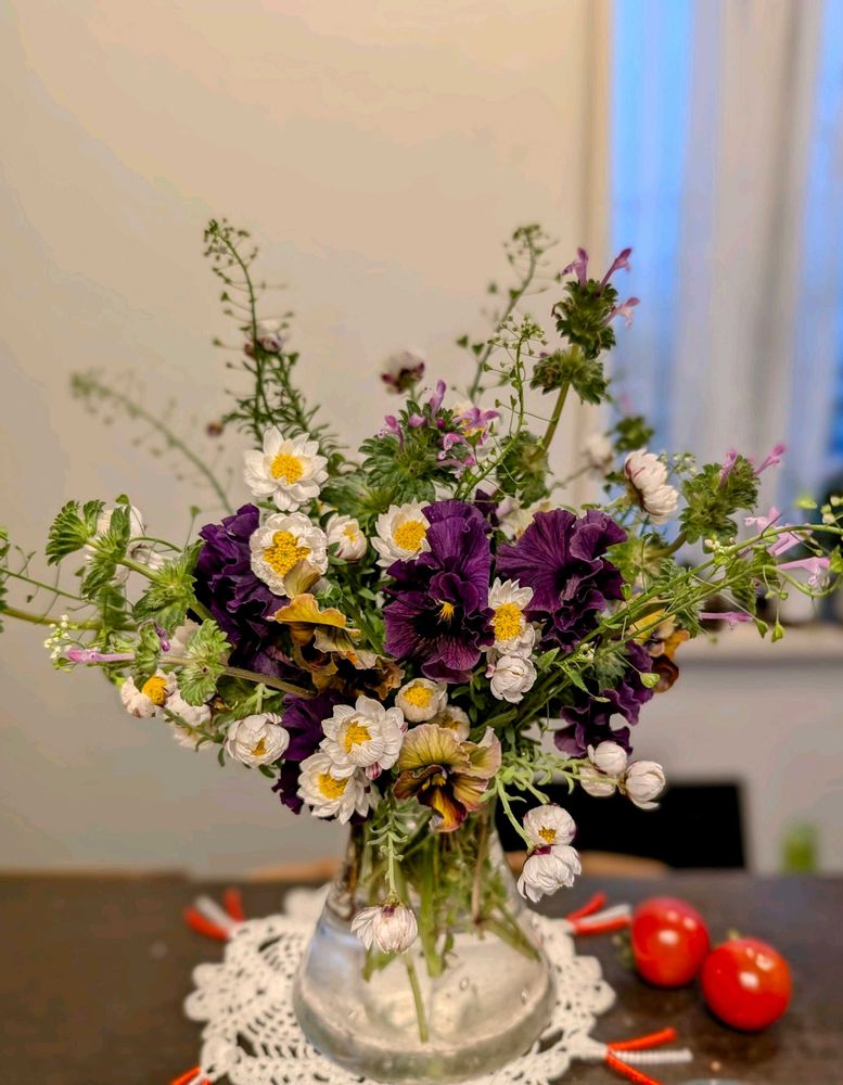 ③家に住み着いたアイビー④極小ビオラフルーレット⑤切り戻し花達の花遊び