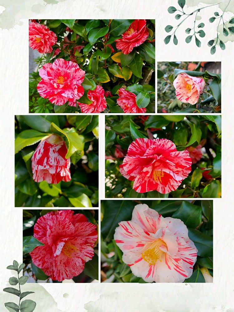 一つの木から色とりどりの椿、とても綺麗ですね😃