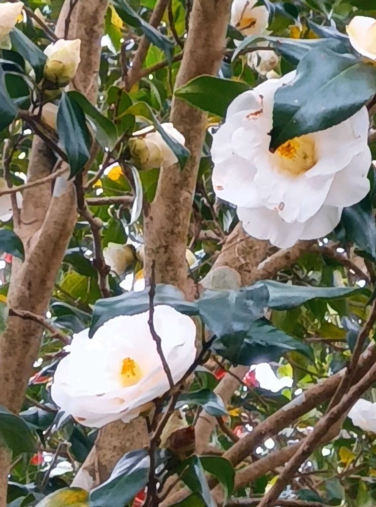 真っ白な椿の花が咲きそろってくると見事です。😃🌸🌿