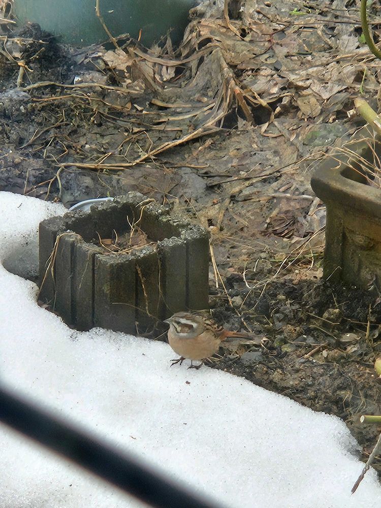 2枚目はちょっと前に来てた、ホオジロさん?スズメよりちょっと大きい(灬・・灬)カワイイネ