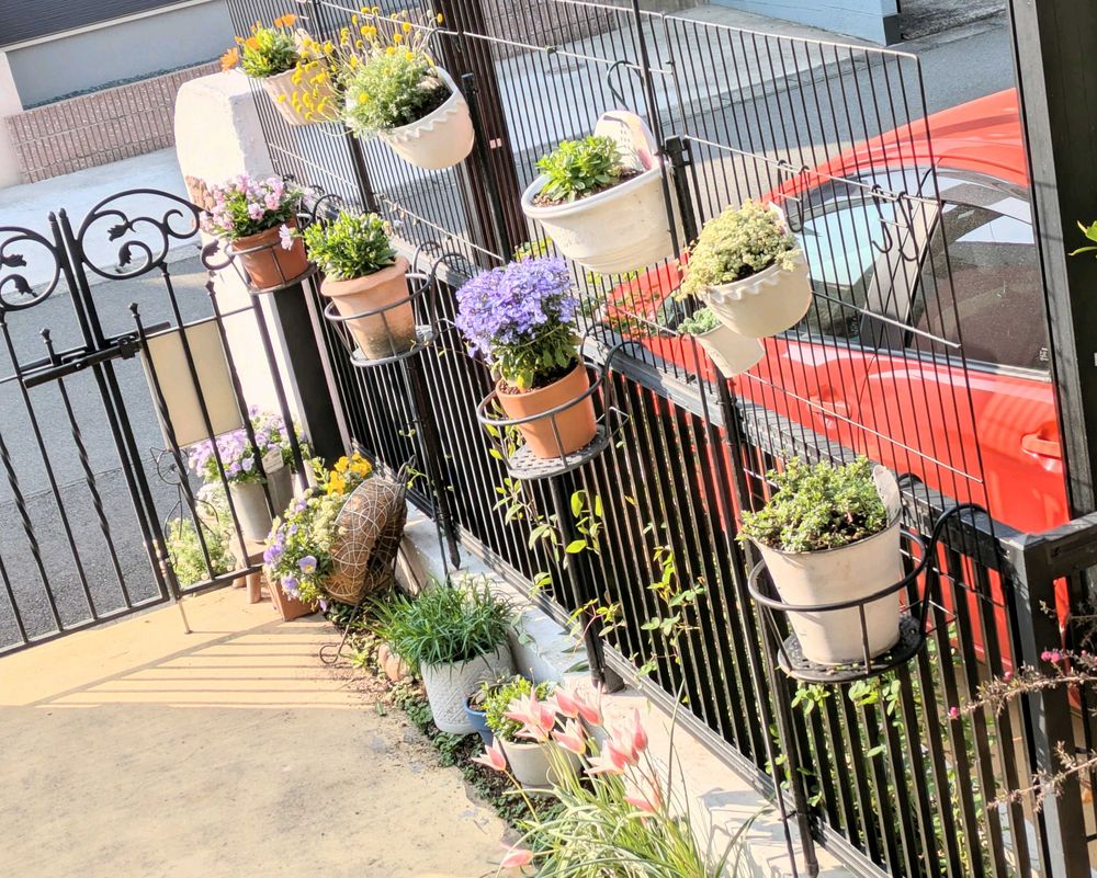 使わなくなった猫用ケージを解体してフェンスに繋いで、ハンギングにしてます😊✨