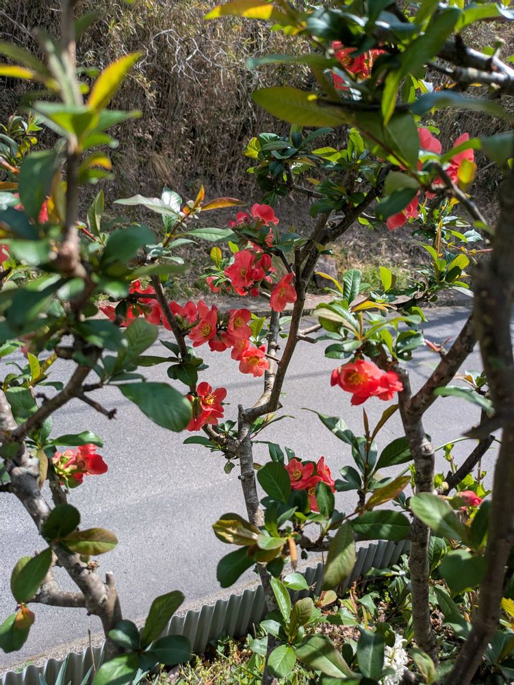 ボケも咲いてきましたが今年は花が少ないな🌿🏵️