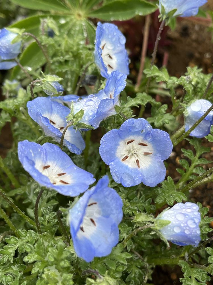 今朝開花のチオノドクサ,ネモフィラ、スミレ?、ネモフィラペニーブラック