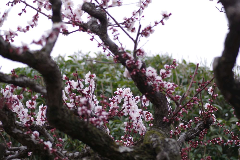 庭の紅梅がやっと咲き始めた