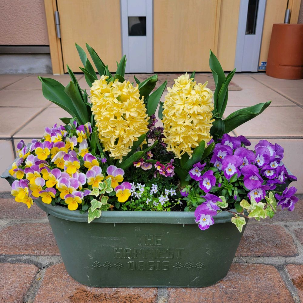 春が楽しみな寄せ植えのトリプルデッカーのヒヤシンスが開花👏華やかになりました⤴️⤴️