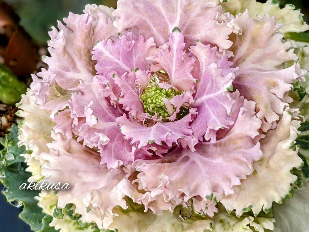 雨に濡れたミニ葉牡丹…