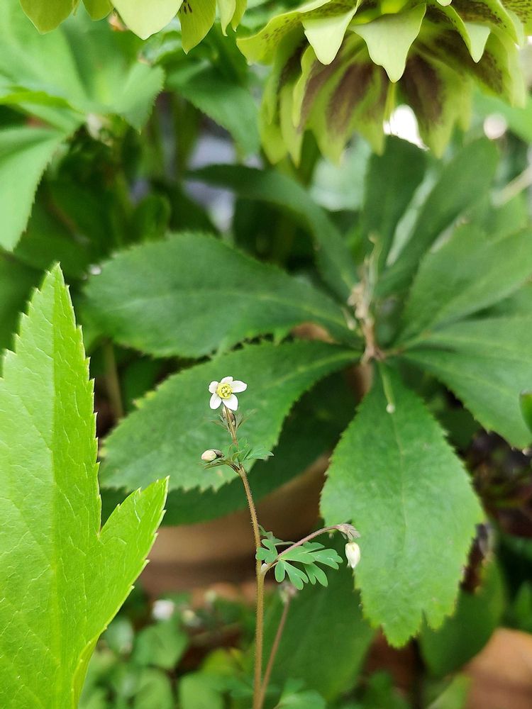 ヒメウズちゃんてとっても可愛いのね!クリローさんの葉陰から覗いて…