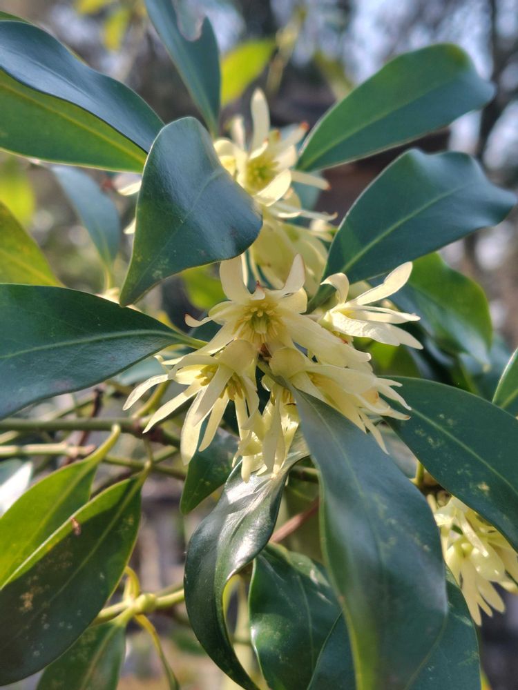 葉は枝先に集まって付き、春先に多数の黄白色の花を付ける。