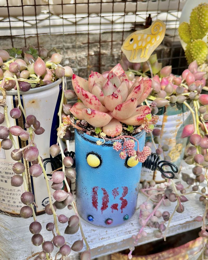 ①お気に入りの作家さんの缶鉢に植えてから1年半くらい経過。セダム所々カリカリやけど植えたてより今の方がイイ💕(*´艸`*)💕