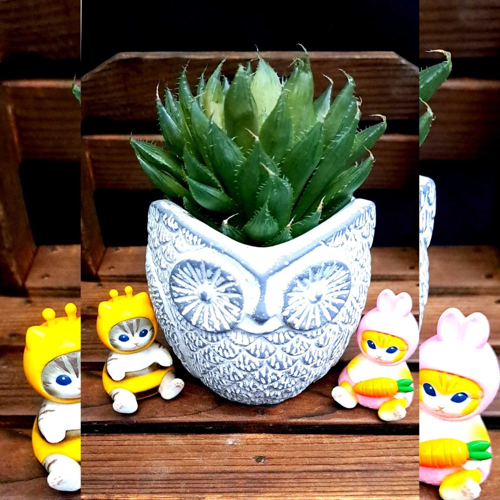 お正月に購入した「フクロウ」の鉢に、「ハオルチア青雲の舞💚」インしてみました(*´∀`)♪💘