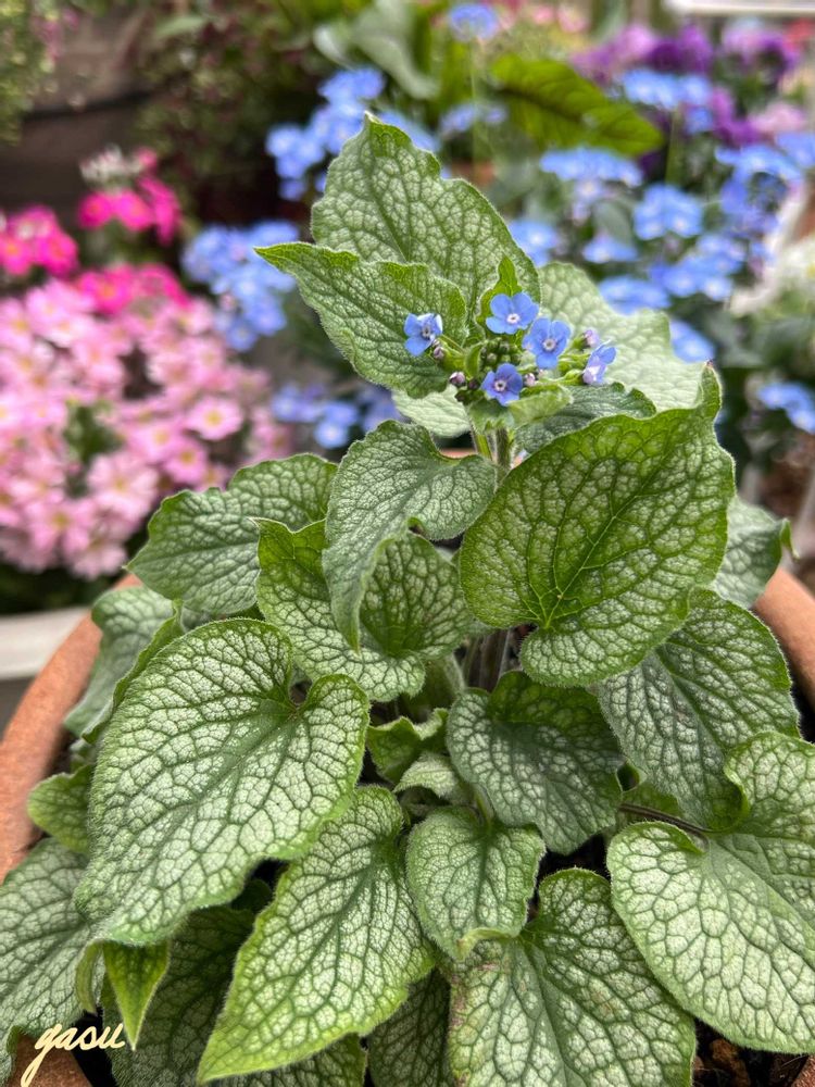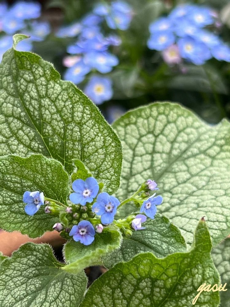 ブルネラは秋にお迎えしたリーフがメインの子ですが、花は勿忘草より小さいけど可愛らしいですね🩵