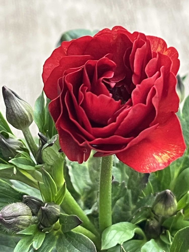 暖かくなってきたので、少しづつお花が咲きはじめた真っ赤なラナンキュラスました(*˘︶˘*).。.:*♥️
