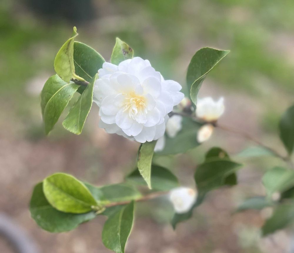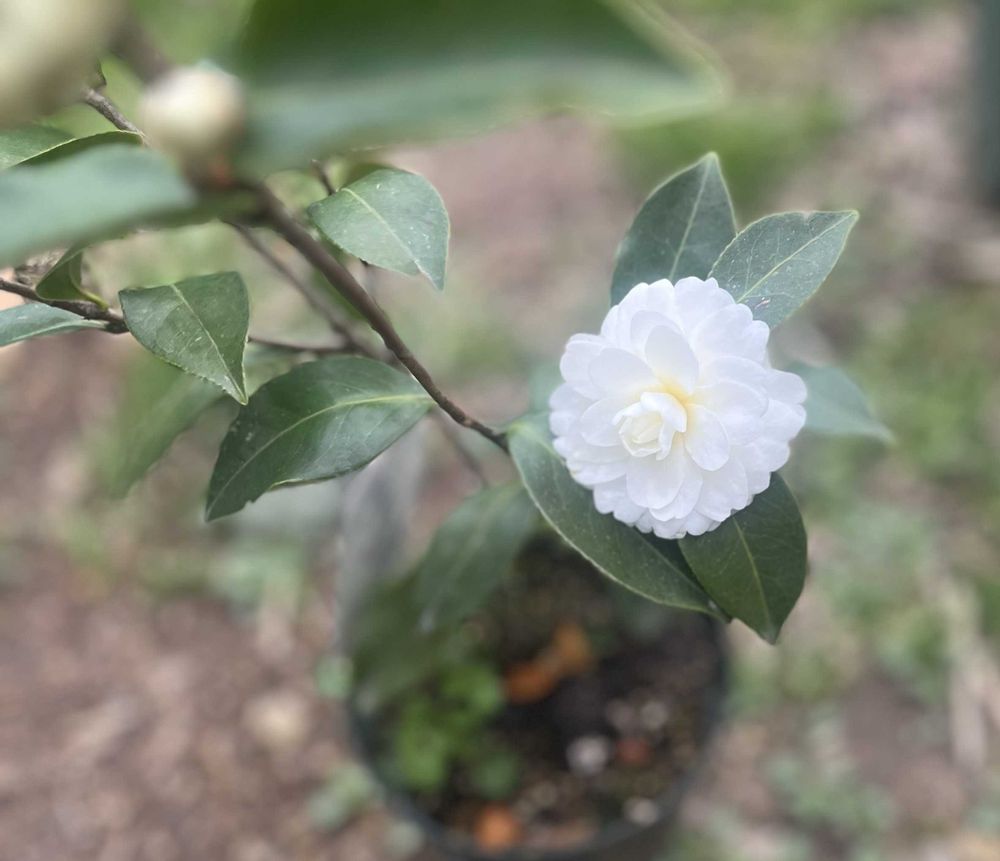 椿、もう少し枝を太らせてからで良いのかなぁ〜or支柱で細いうちに真っ直ぐにしてあげるとか🤔