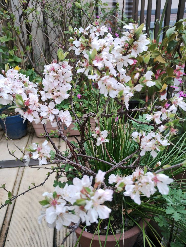 ユスラウメの花満開✌ニワウメも満開🤟ベランダ花盛り👏👏👏