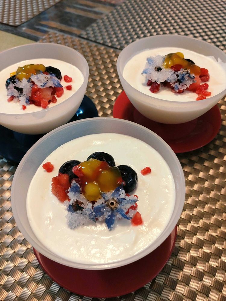 ルリジサのヨーグルトムース!上に🍓🫐と乗っけただけなんだけどね!