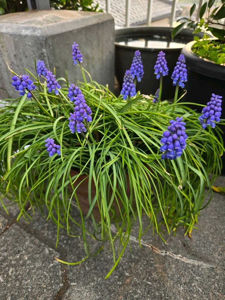 掘り起こして遅くに植えると葉っぱ短いですね うちのムスカリものびのび💦😆