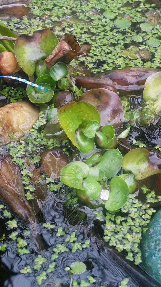 暖かくなってきたのでホテイアオイの新芽が出てきました。冬場は不織布をかけていました。