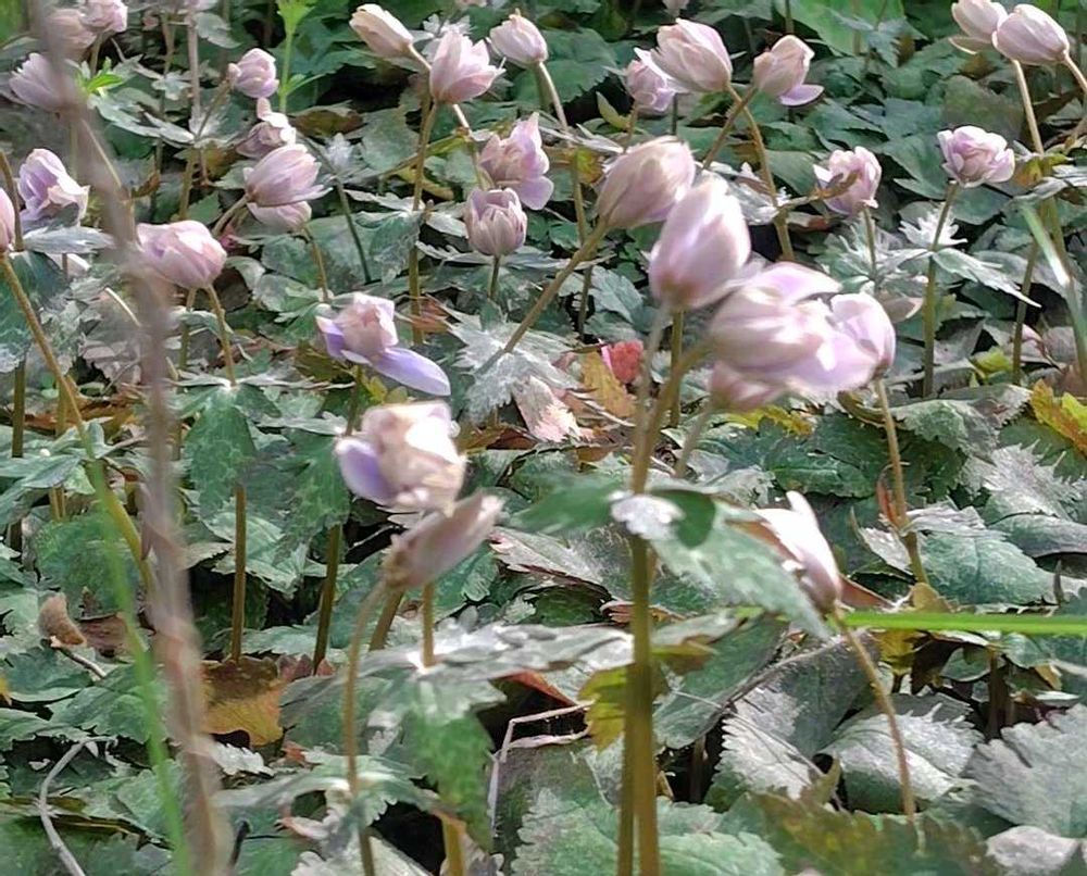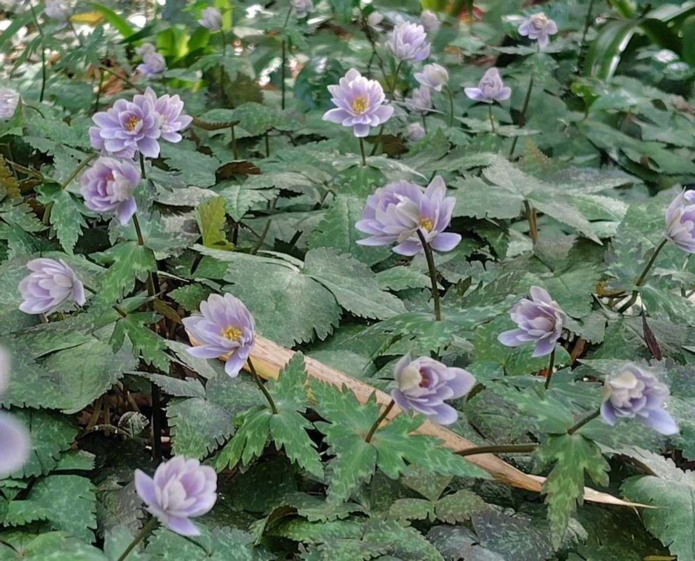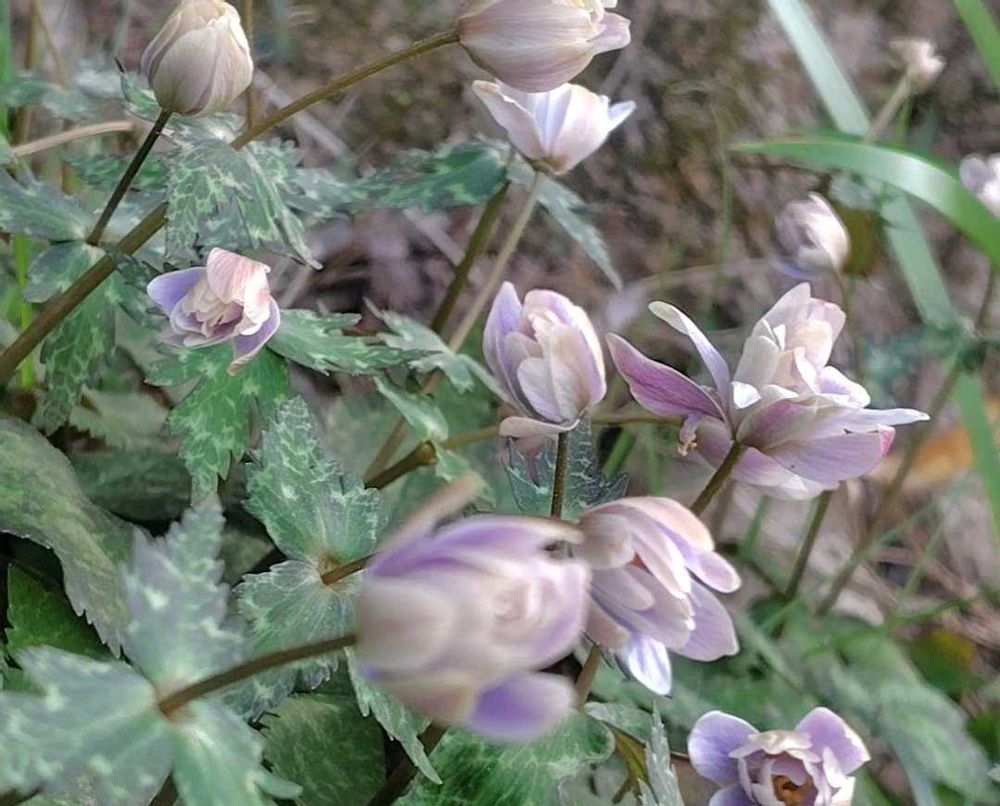 ユキワリイチゲは淡い🟣色。花が閉じているのは気温が少し下がったせいかな?