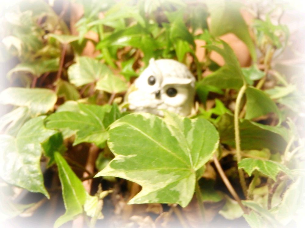 アイビー色々冬越しプランターにフクロウさんがやって来ました🦉