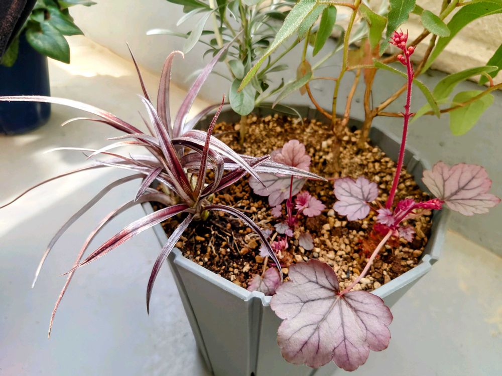 ヒューケラは、2年か3年生くらいのを植え替えついでに寄せ植えに使いました👏