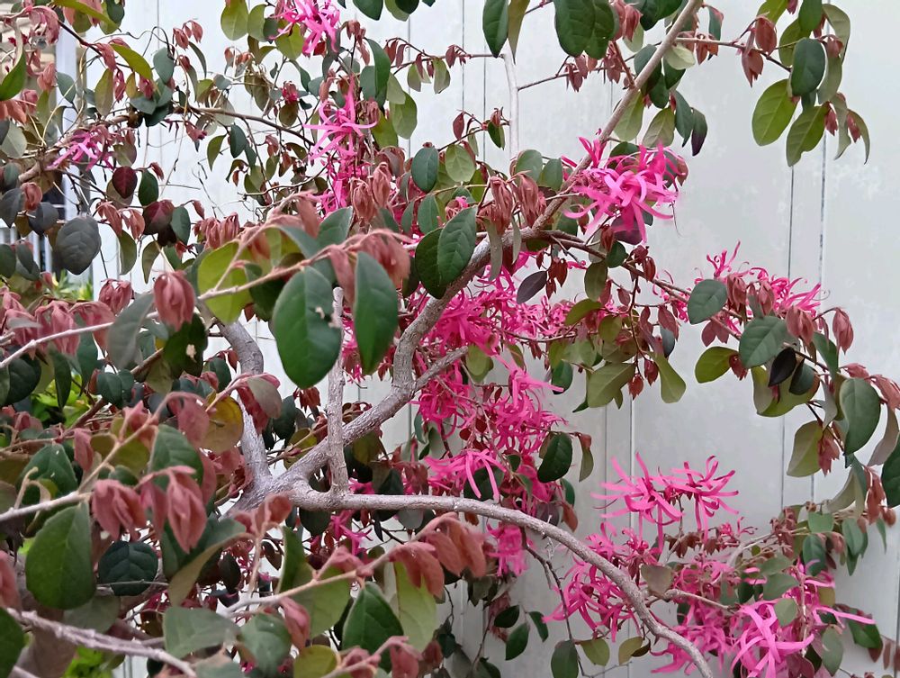 何と言う事でしょう😄一本の木なのに、選定の結果で、花と新芽が半分ずつに分かれてました😯