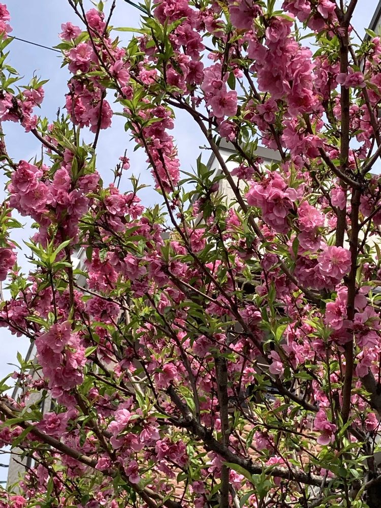 ハナモモは小学校の正門の横の小さな花壇に咲いています。その横にサクラが咲いてきてます。もうじきしたら入学式でこのハナモモと🌸サクラをバックにして記念写真を撮りますと用務員さんがおっしゃってました。