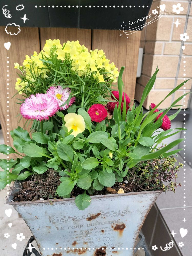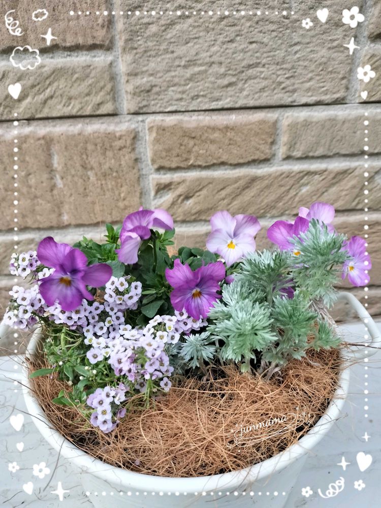 種から育てたビオラたちがたくさん育ったので 寄せ植えを次々に作りました