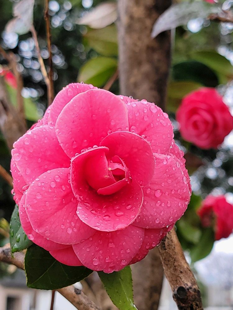 雨に打たれたツバキ ピンク色🩷がкαωαɪɪ~ෆ⃛ですね🥰