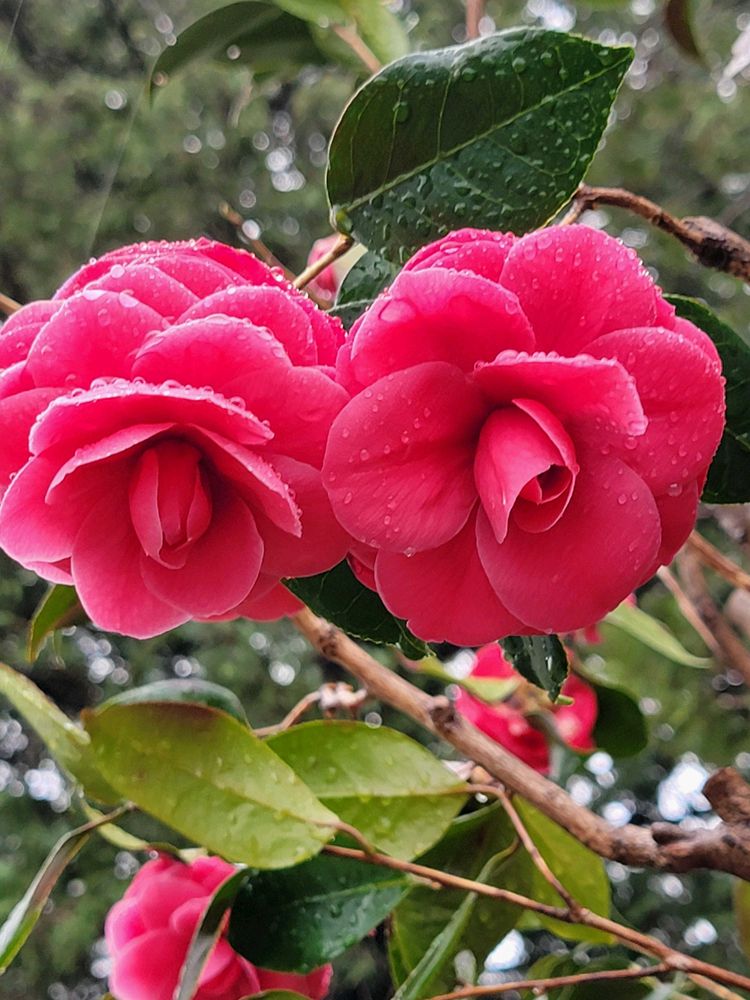ツバキは雨に濡れてしっとり 綺麗に💕