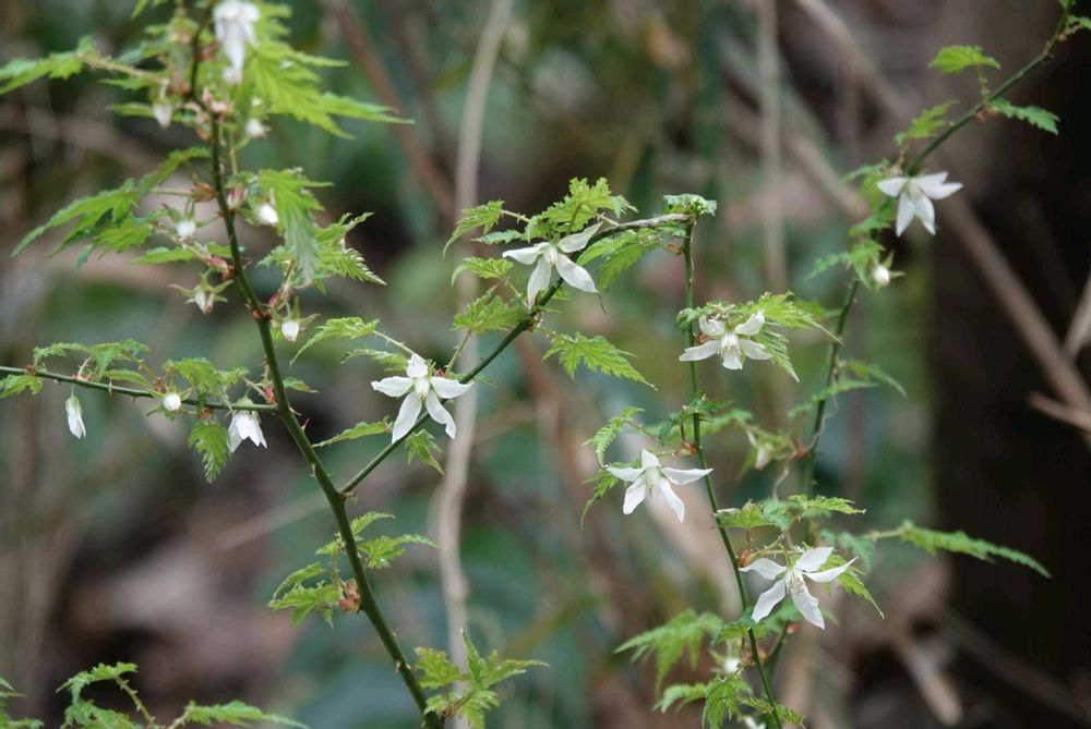 切り開かれた林の斜面はモミジイチゴの白い花がいっぱいでした。かなり自生していたと想像出来る。棘も確認👀