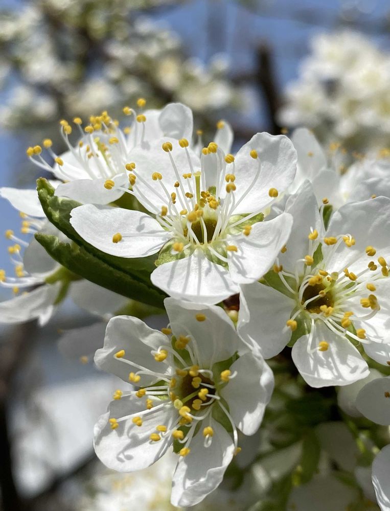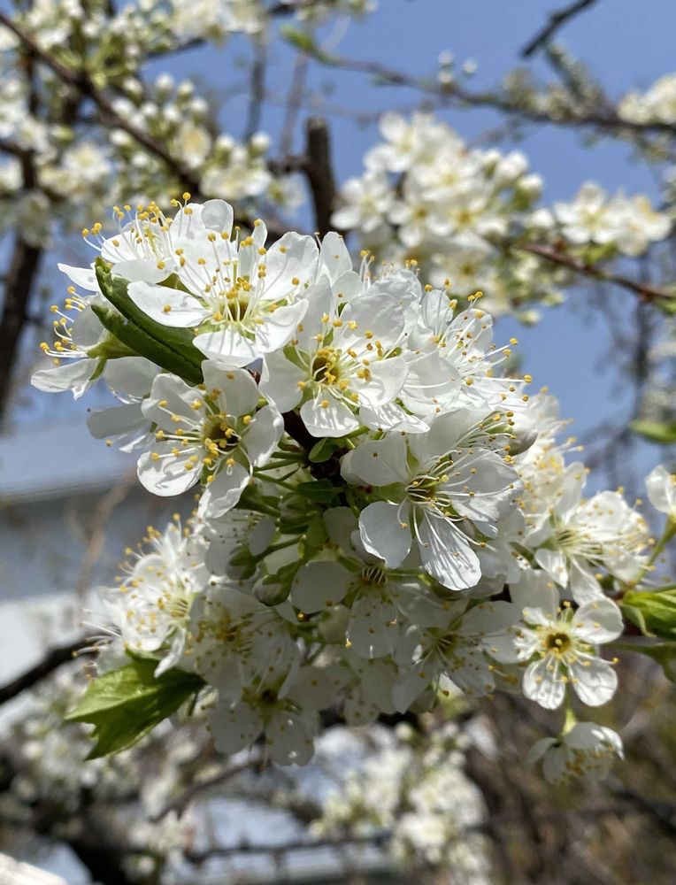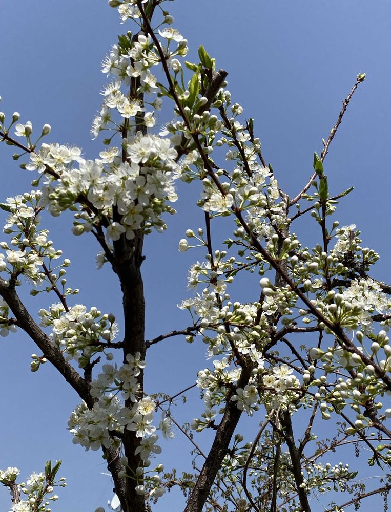 アンズの花が終わり、隣にあるプラムが満開になりました。