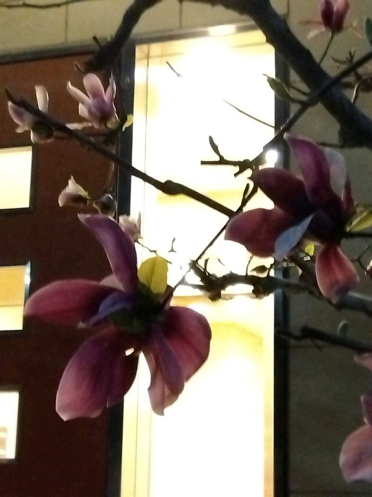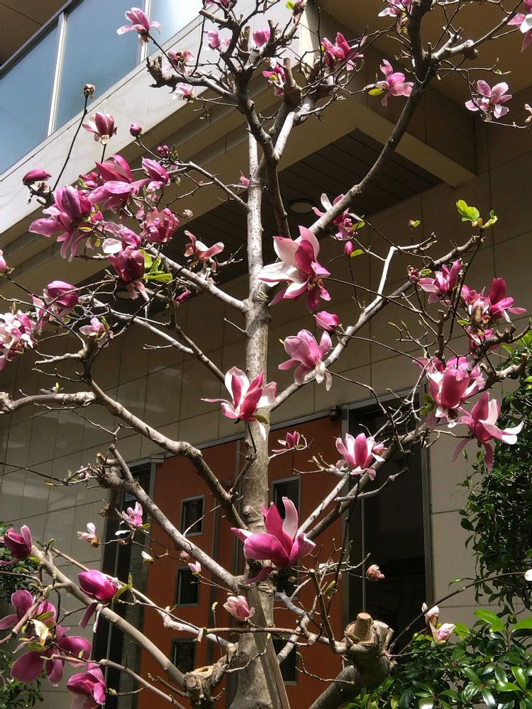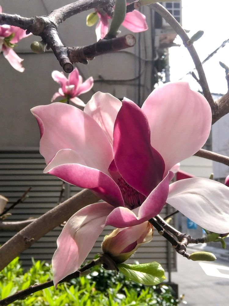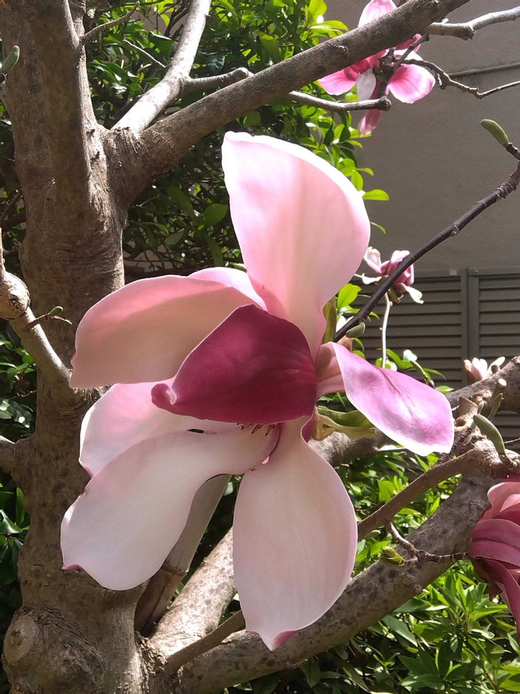 マンションの花壇に大輪のモクレンが暖かさに誘われ咲いています♪