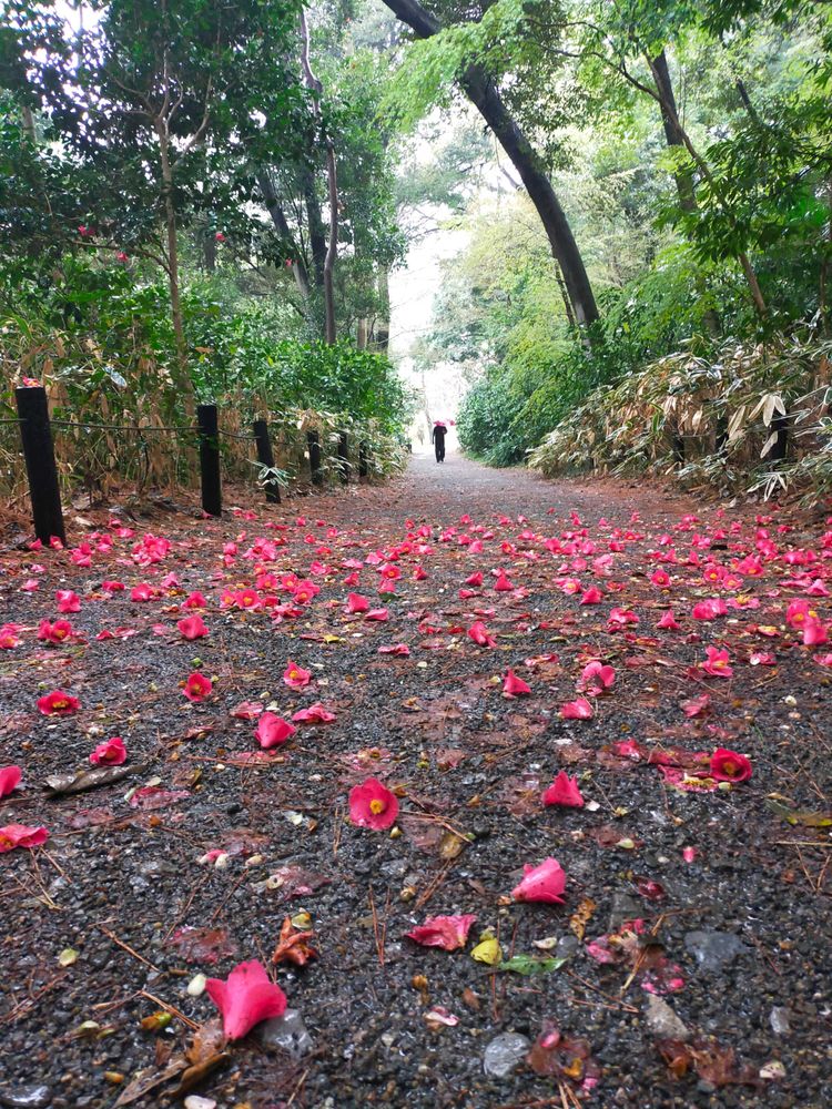 ツバキが落ちたばかりの真っ赤な地面🔴