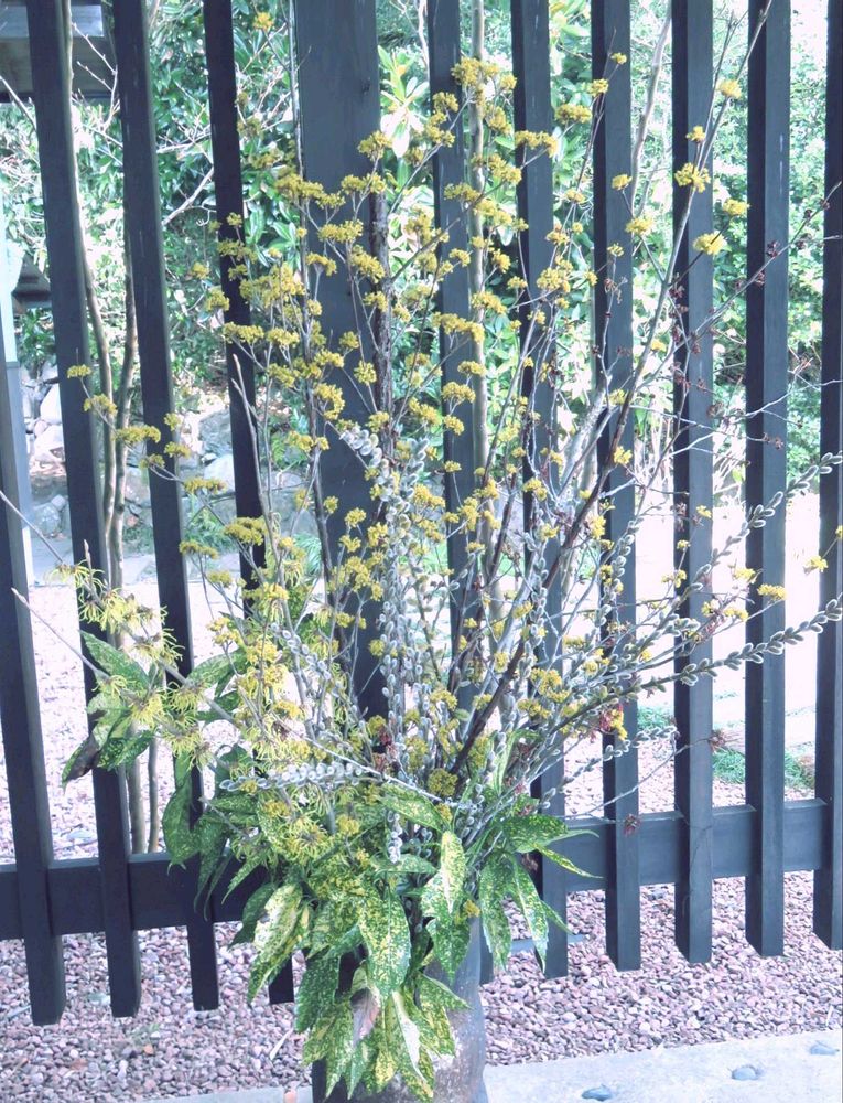 2️⃣⇒生け花(サンシュユ・マンサク・斑入りアオキ)