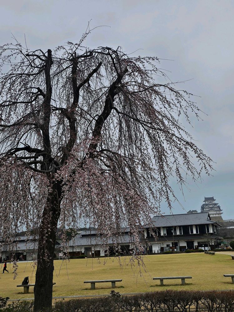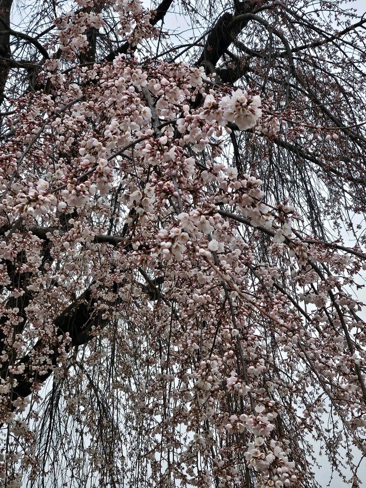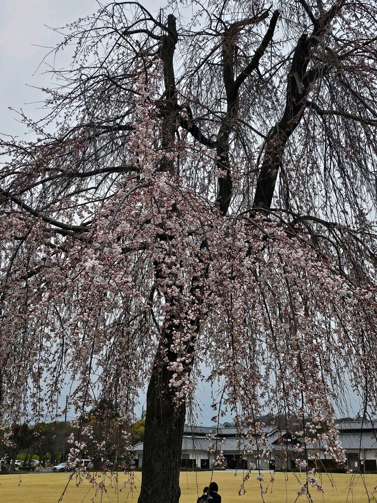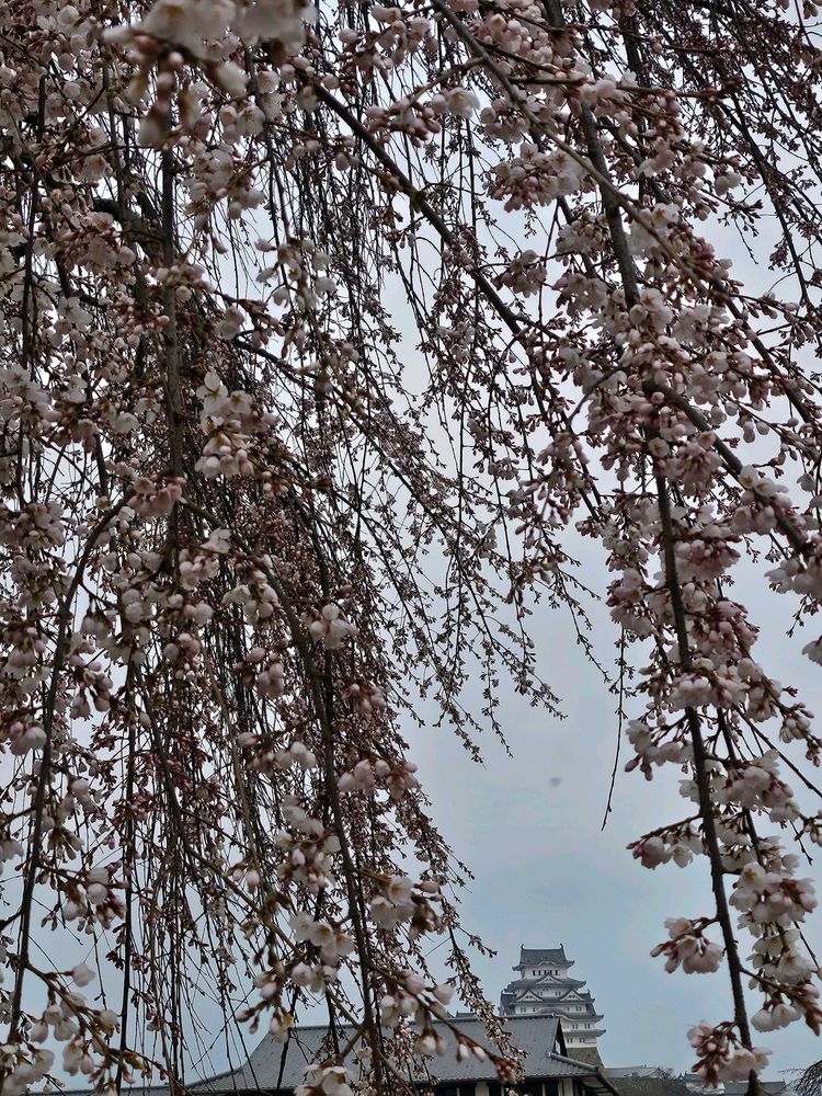 おはようございます。家老屋敷跡公園からお城と垂れ桜です🏯🌸