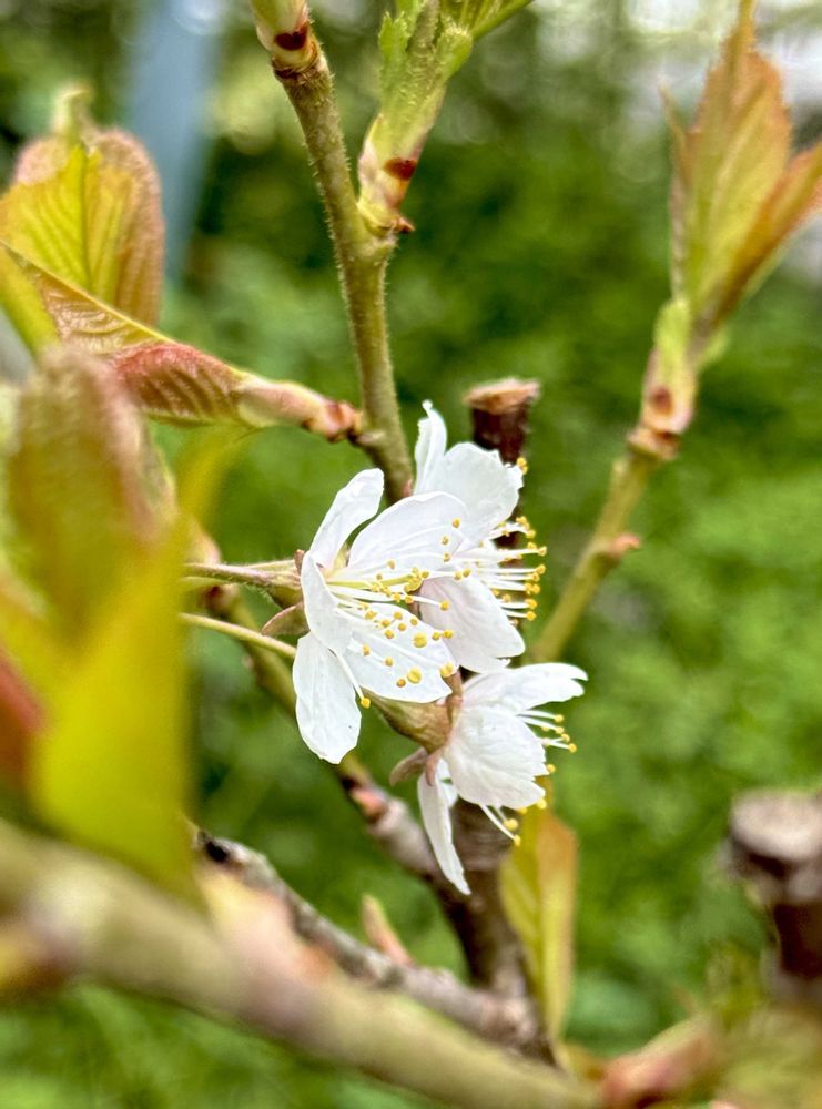 今朝見たら去年は一輪も咲かなかった暖地さくらんぼ🍒の花が咲いていました😊