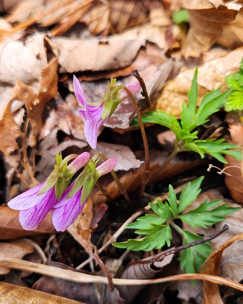 ヒゴスミレって、葉っぱがとても細く裂けるイメージで花色は白に近いと思っていたのですが🧐