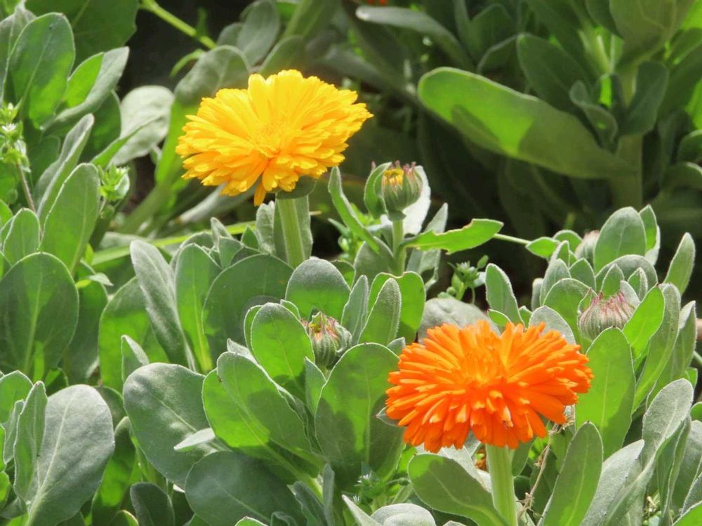 ビタミンカラーのキンセンカが元気に咲いていました(①②③)。