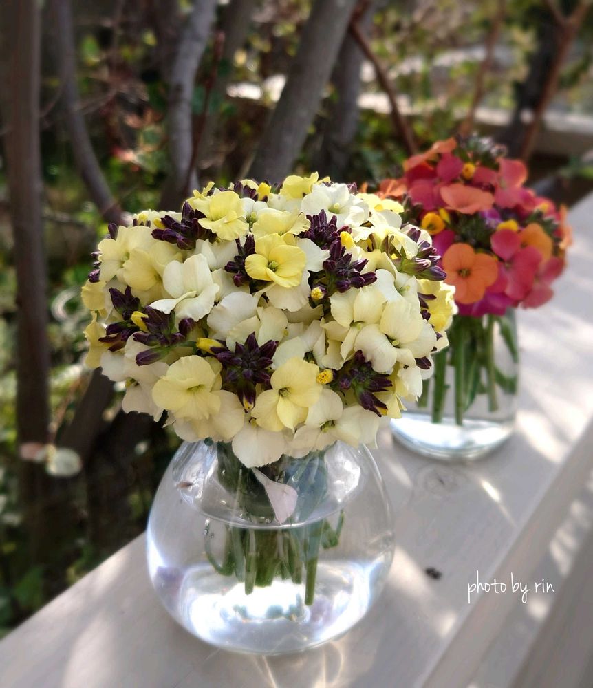エリシマムって切り花にしてまとめて生けるとピンクッションみたいにまんまるになってかわいいです💕