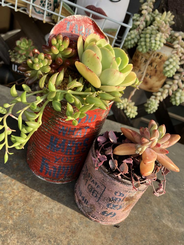 以前かえる♡ちゃんからの🎁のリメ🥫にそれぞれ植えてみた♡