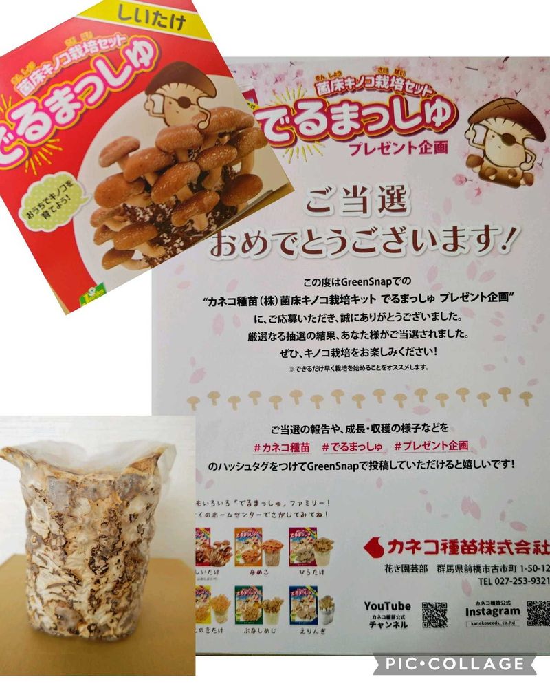 カネコ種苗様のプレゼント企画、菌床キノコ栽培セット『でるまっしゅ』のしいたけ🍄🟫栽培セット。