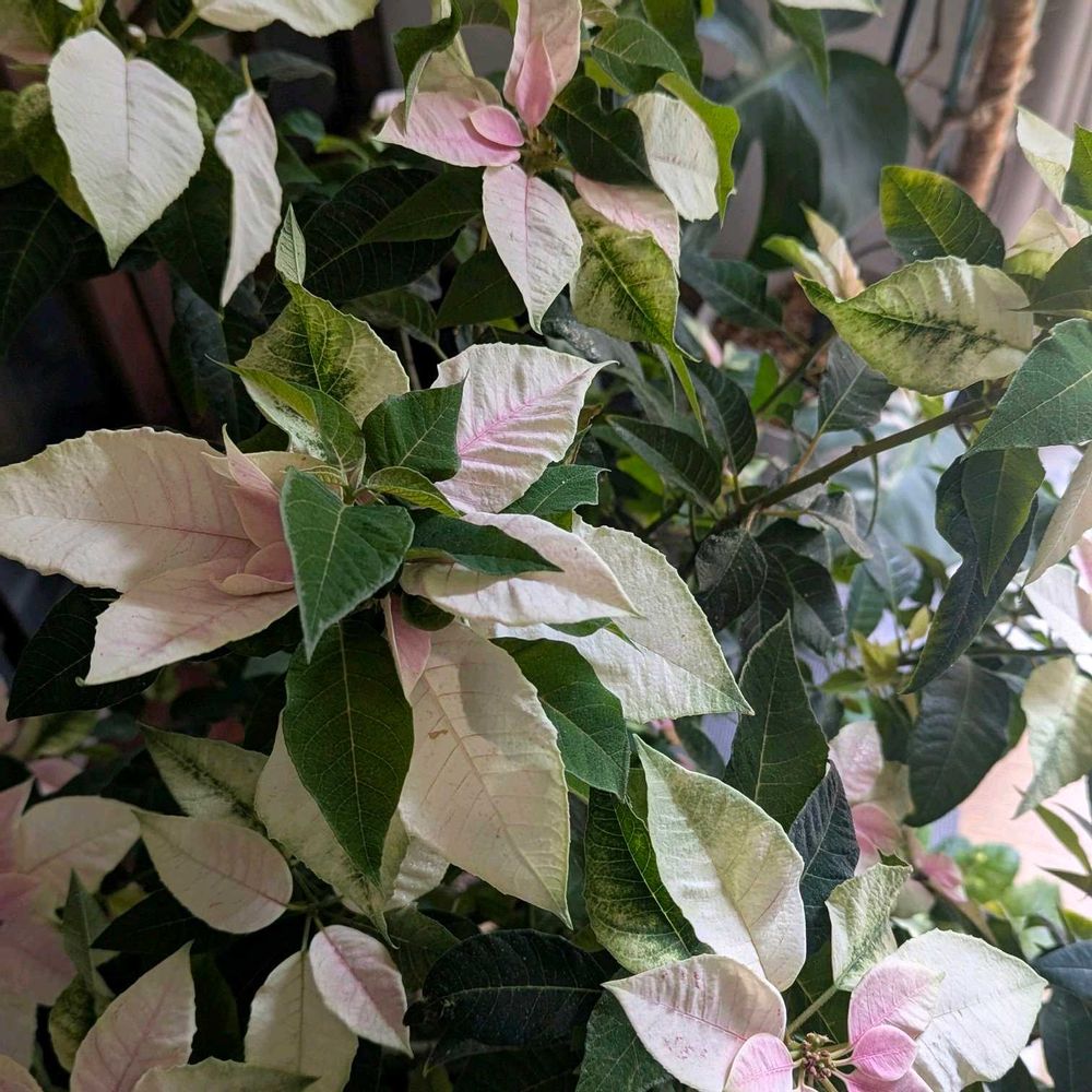 ポインセチアは10年近く育ててこんなに葉が長持ちした事が無いんですよ☺️