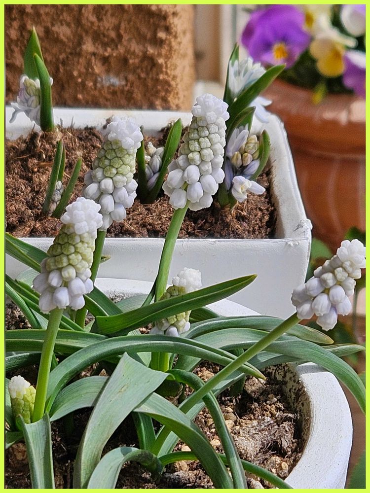 ②玄関ポーチの鉢植えムスカリ🤍🤍🤍 こちらは賑やかですね~♬