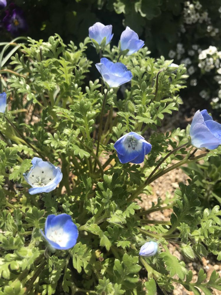 ネモフィラ、冬の強風を乗り切って咲いてくれました!クリスマスローズ、やっとです。冬に葉っぱが次々に茶色くなって😨このまま枯れてしまうのでは?とハラハラしました…初開花、嬉しいですよね〜🌸!