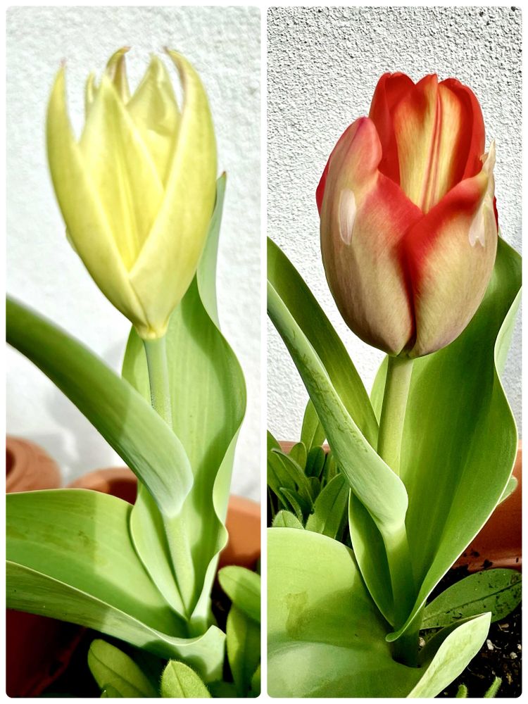 赤と黄色のチューリップ🌷、かわいいですね🥰