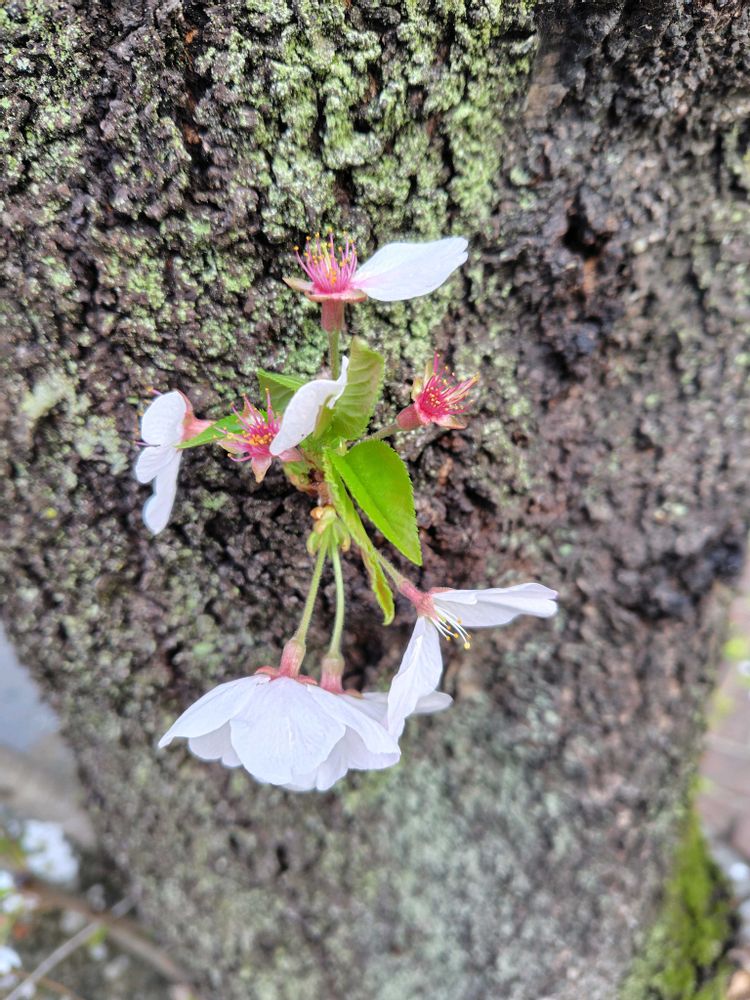 苔むした幹からの銅吹のお花のピンク色🩷映えますね⋆.˚⊹⁺🌸力強さを感じます🌸🌸🌸🌸