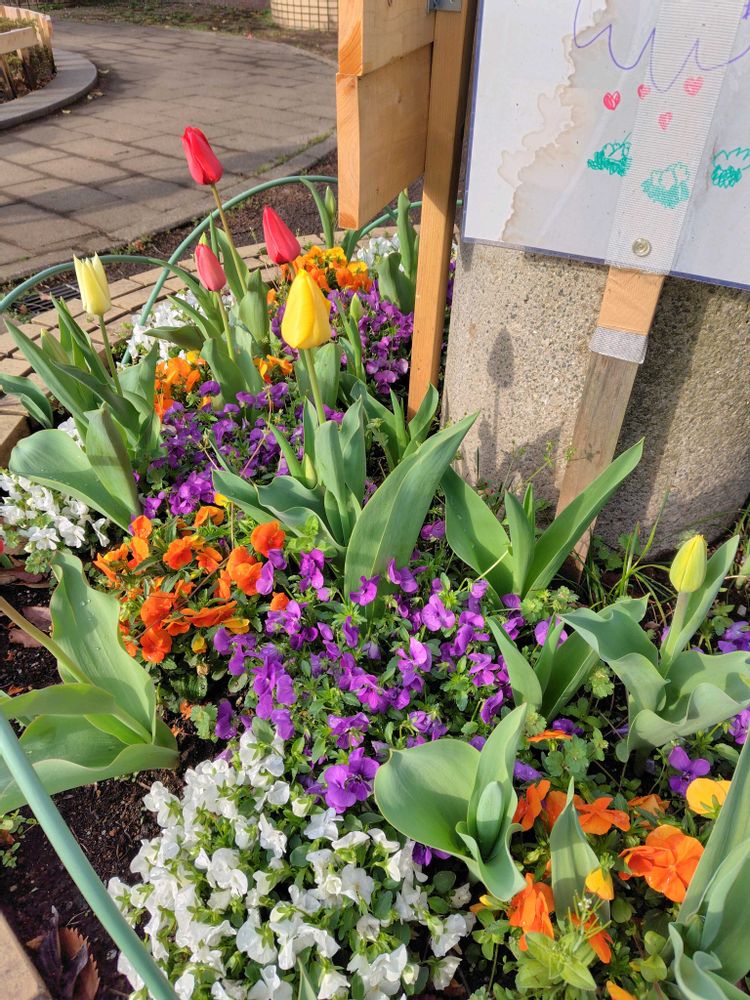 ④…公園の花壇の花たちも一斉に咲きだしました🌷💛❤️🌿