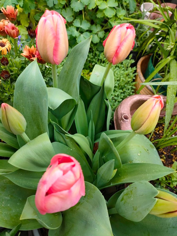 屋上のチューリップ🌷も🌿が大きくなり、ポツポツ可愛い🌷🌷🌷の顔を出してきました。