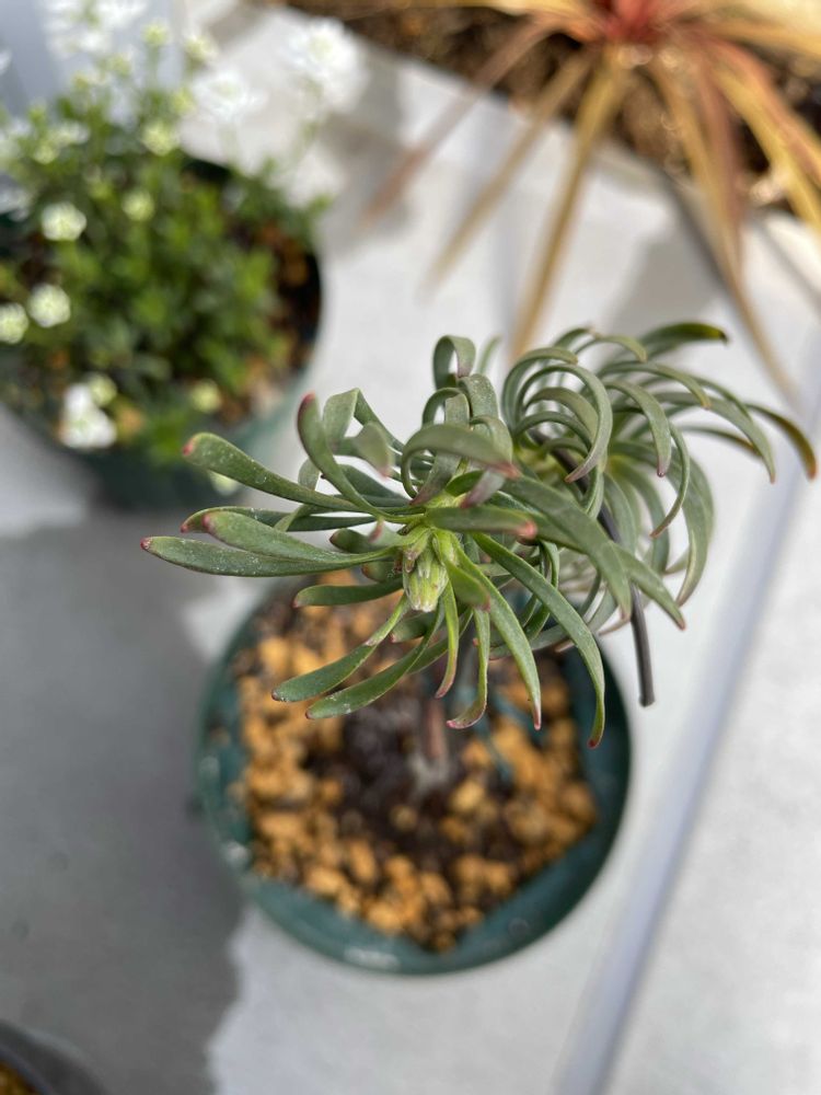 2月におつとめ品300円で購入したリューカデンドロンジェイドパールも無事に新芽を確認!